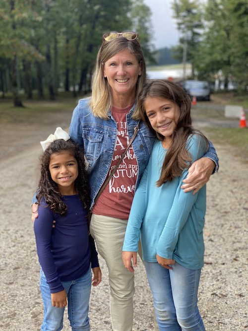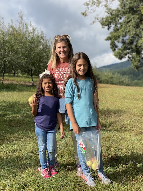 First of all, back in the fall, my mom and I took the girls to an apple orchard about an hour from home. We had the perfect day. The weather was great, there were apples to be picked, apple doughnuts were devoured (YUMMM), apple cider was in our cups, and the most surprising fun activity was shooting apples!