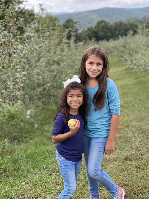 Then we headed out into the orchard to pick a bag of apples. It was late in the season so we ended up walking pretty far, but we found a ton and loaded our bag down. It is so pretty there.