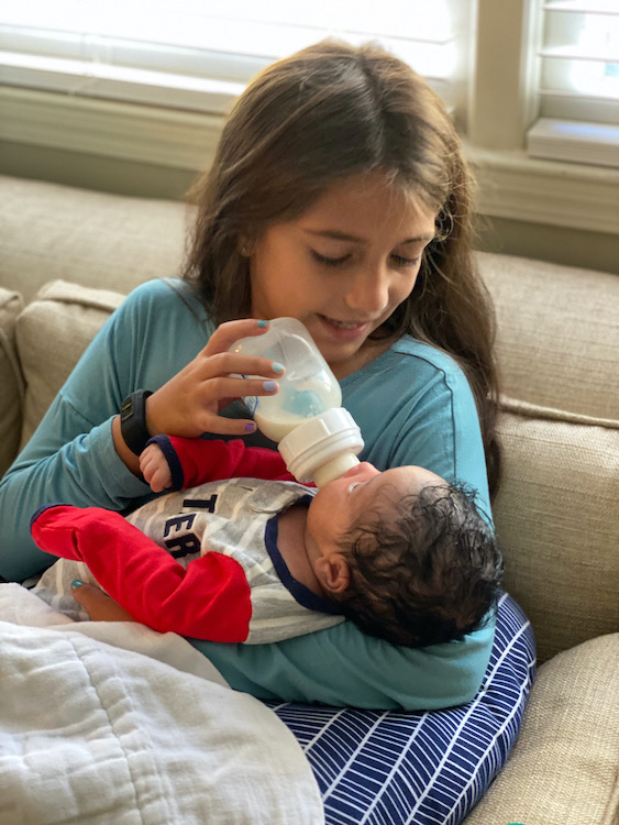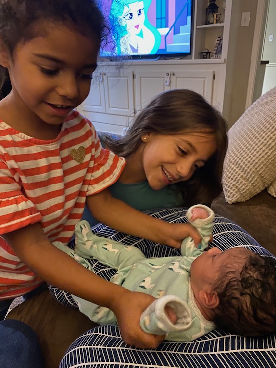 We are all in love – especially the two big sisters. From Day 1 they were all about their baby brother. And even now, 4 months later, they are so sweet with him. Now that the girls are older, they lead our bedtime prayers, and they almost always include “Thank you, God, for giving us a baby brother.” We are so very blessed.