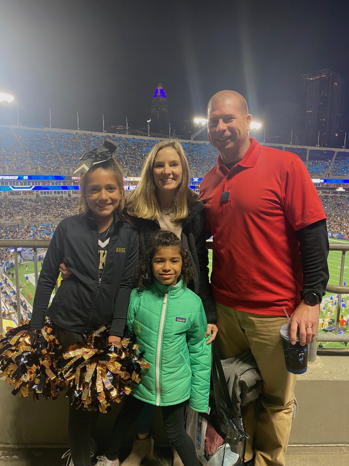 In the fall, the girls both did cheerleading. Kate’s team (and some of the other girls around her age) were asked to be a part of a group that was a part of the ACC Championship in Charlotte, NC. So we had lots and lots of practices leading up to their big day on December 5th. When we first committed to this, we thought that the Clemson Tigers would FOR SURE be playing in the game. Well bummer because they didn’t, but we still had a blast. This was definitely a once in a lifetime kind of event for Kate and it was so cool to see her out on that field on such a big night.