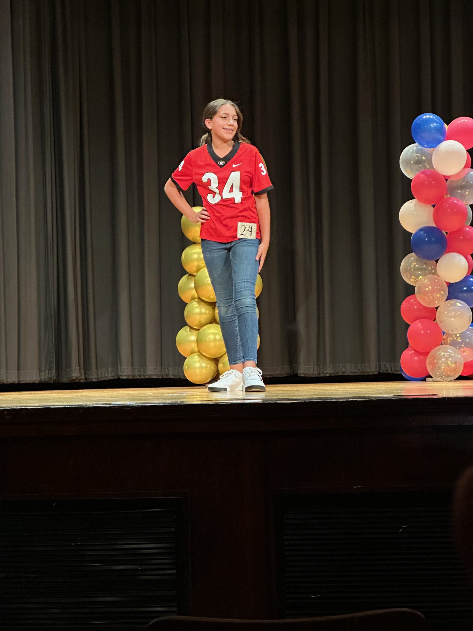 Instead of a casual wear portion, they had something called “Personality Plus”. The girls were encouraged to pick out something that described their personality – what they are like, what their interest are, etc. Kate chose to wear her Georgia football jersey, which was probably not a surprise to anyone there!