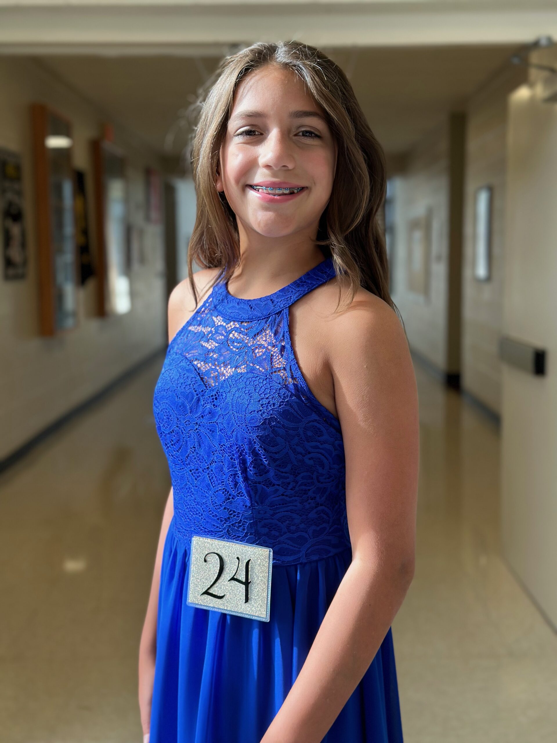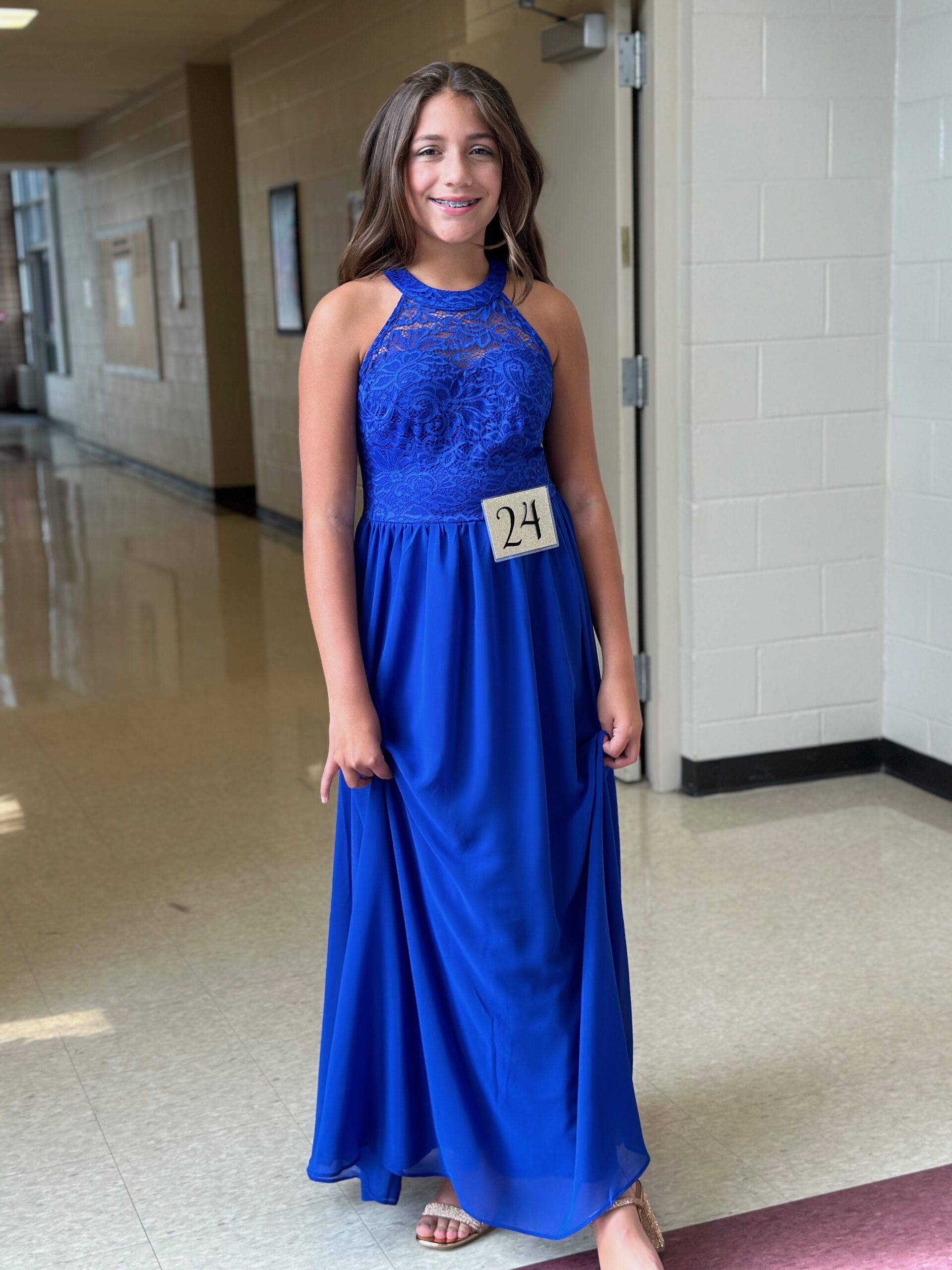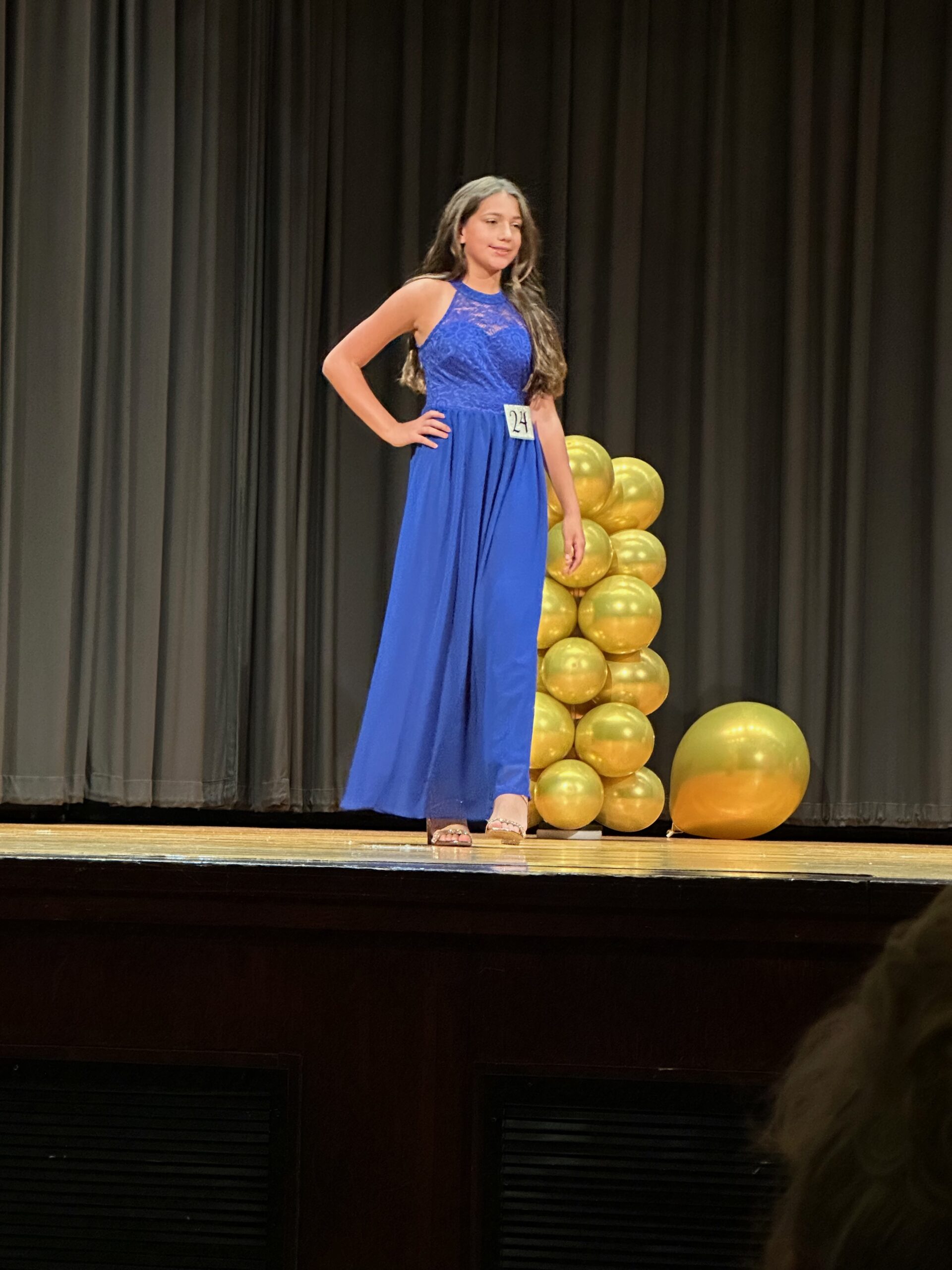 For the evening gown portion, she picked out a royal blue dress. I couldn’t believe how old she looked when she put this on. No longer my toddler or even my little kid. She is definitely a young lady now. I was so proud of her for doing this and having the confidence to get up on stage in front of all of those people at 12 years old. I definitely wouldn’t have had the courage to do it at her age!
